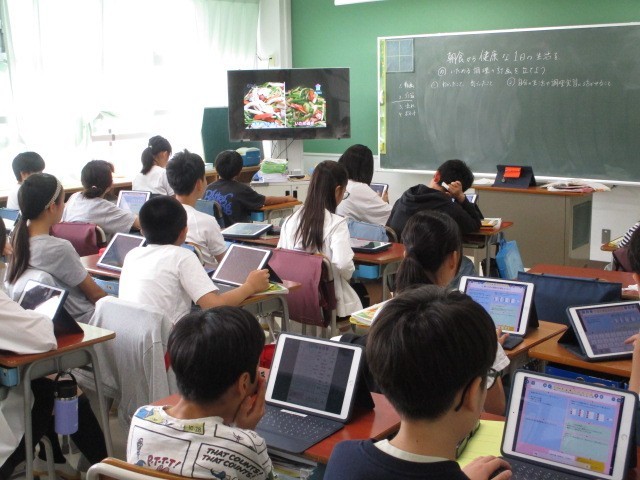 朝食から一日の健康な生活を~6年 公開日 2025/05/08 更新日 2025/05/08 今日のできごと 家庭科の学習です。バランスのよい炒めるおかずを考え、炒める調理の計画を考えていきます・・・・