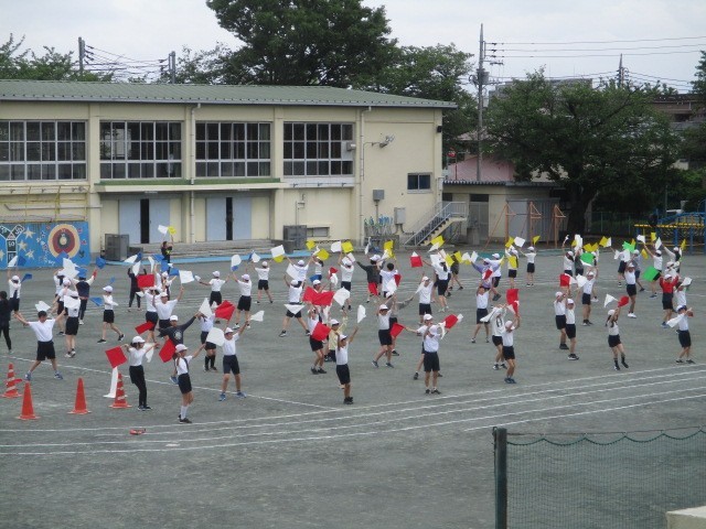 運動会練習~6年 公開日 2025/05/12 更新日 2025/05/12 今日のできごと 各学年での運動会の練習が始まりました~6年生の練習です。フラッグを風になびかせて、表現の練習が進んでいました~
