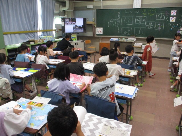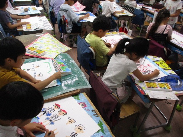 「楽しかった~」と感想を話しながら、画用紙いっぱいに思い出を描いている子どもたちでした~