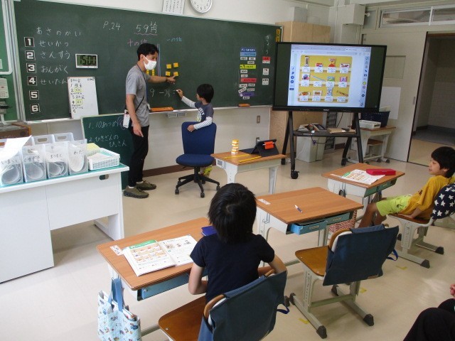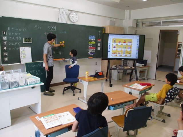 たし算の筆算~わかたけ学級 公開日 2025/06/07 更新日 2025/06/07 今日のできごと わかたけ学級の2年生グループの学習です。たし算の計算の仕方をブロック操作で確認しながらしっかり理解していました~