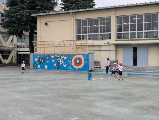 立ち幅跳びの計測をしたり、投げる遊びをしたりしました。
