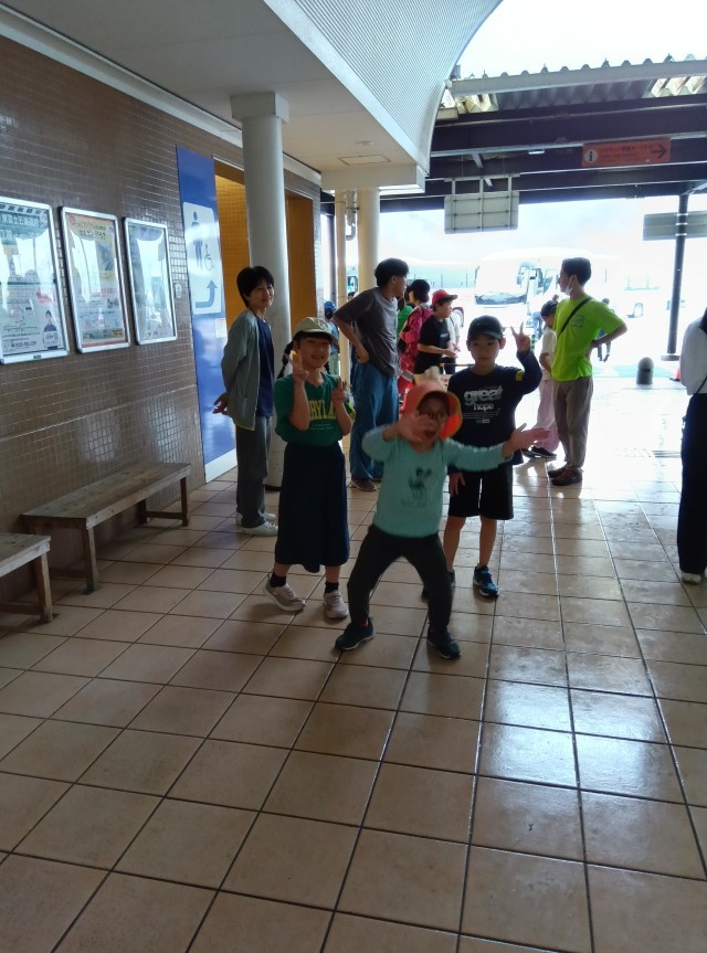 バスの中では、弦巻小の皆さんと楽しく過ごしています~