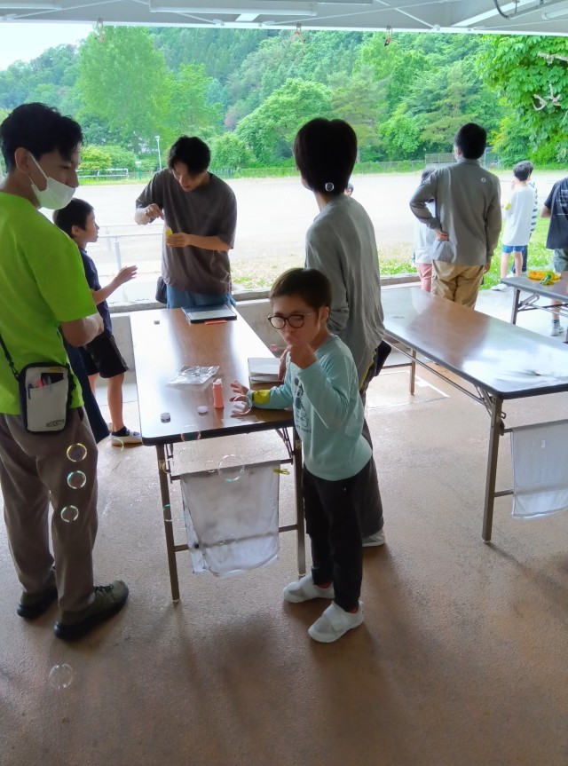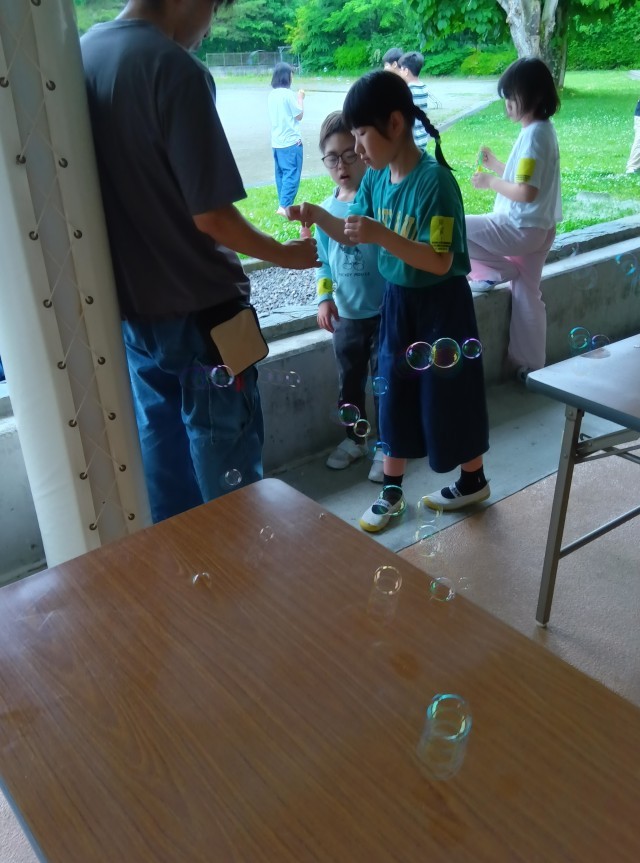 弦巻小の皆さんと一緒にシャボン玉遊びをしました〜