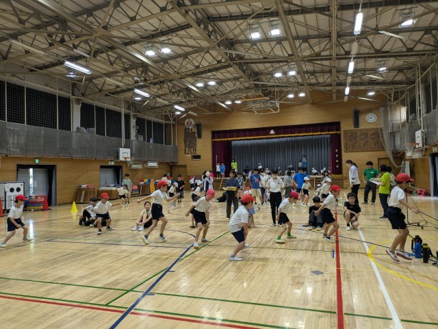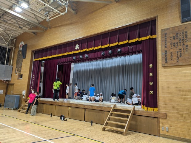 雨天延期になった一部の体力テストは今日と明日実施します。体育館は、昨日世田谷区から納品されたスポットクーラーと、送風機2台、空調を稼働させています。