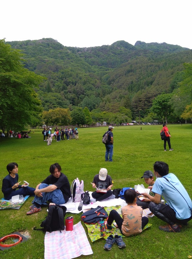 ハイキングのゴールの野鳥の森公園に到着し、お弁当タイム〜
