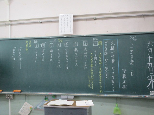 こまを楽しむ~3年 公開日 2025/06/19 更新日 2025/06/19 今日のできごと 国語の説明文の学習です。前時までの説明文の読み取りの学習を生かして、「問い」と「答え」を見付け、段落を「はじめ」「なか」「おわり」に分ける活動に取り組みました~