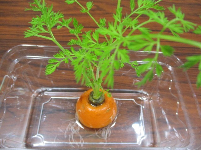 でもその人参の切れ端を、水につけておいたら、自分から根や枝葉を伸ばし、育ってきましたよ~
