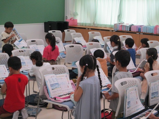 指遣いに注意しながら、鍵盤ハーモニカの練習です。