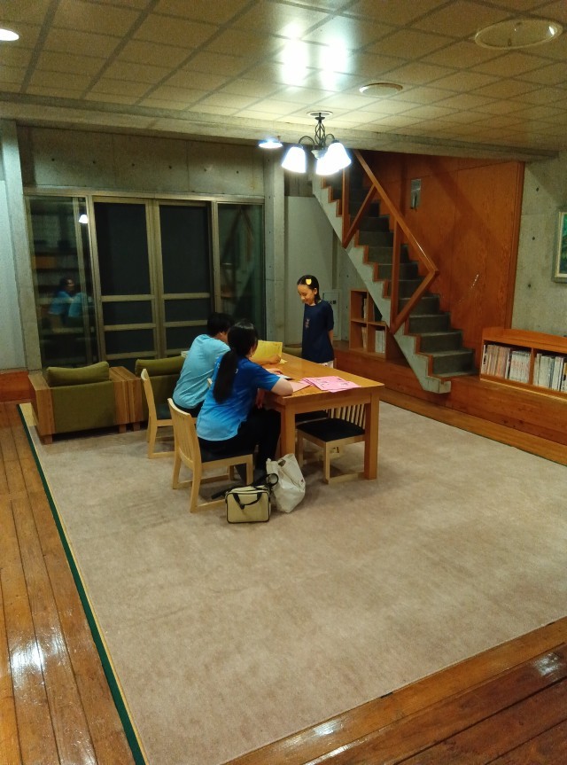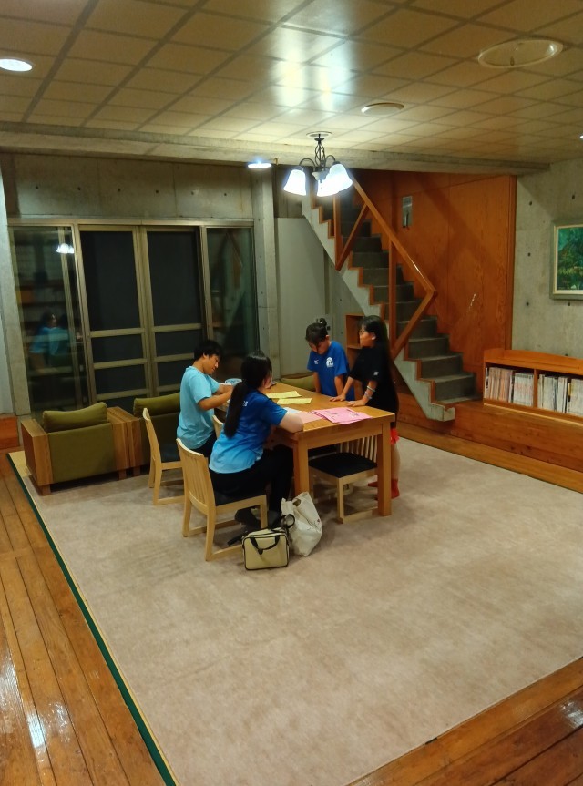 入浴タイムのあと、かく班ごとに明日の持ち物準備と、検温を実施し、保健係が報告です〜