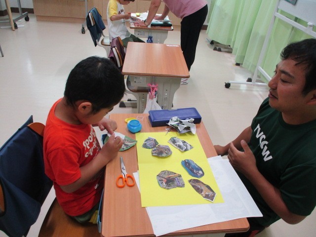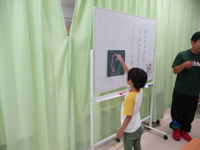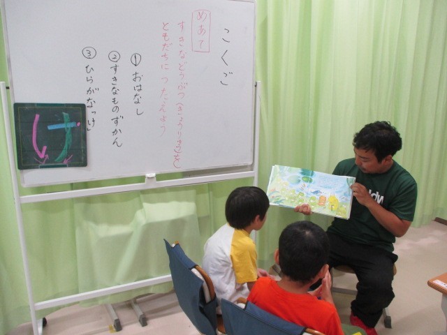 国語~わかたけ学級 公開日 2025/07/07 更新日 2025/07/07 今日のできごと わかたけ学級の1年生の国語の学習です。絵本の読み聞かせをしてから、好きな動物を相手に伝えるため、はさみで切り抜き、のりで貼る活動を取り入れながら、図鑑づくりに挑戦しました~最後はひらがなの学習です。書き順を確認して練習しました~