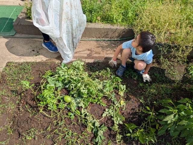 野菜を育てよう わかたけ学級 公開日 2025/07/10 更新日 2025/07/10 今日のできごと わかたけ学級の皆さんが朝から畑の手入れをしています。酷暑の中、すいかも大きくなってきました。「食べれるのかなぁ」と話しながら手入れをしていました。