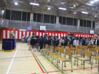卒業式の会場設営と点検を教職員で行いました~用賀小学校の桜も咲き始めていますよ・...
