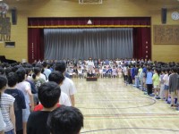 全校児童が体育館に参集して、1年生を迎える会を開きました~