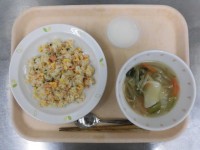鮭チャーハン わんたんスープ ホワイトゼリー 牛乳
