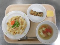 鮭チャーハン わんたんスープ ホワイトゼリー 牛乳