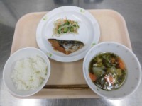 ごはん 鮭の香味焼き さつまいものきんぴら あおさ汁 牛乳
