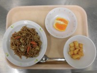 ソース焼きそば パリパリサラダ フルーツ白玉 牛乳