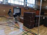 展覧会の準備が本格化しています。5年生児童による体育館の用具の搬出、学校主事によ...