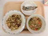 【学校給食週間】 昭和17年ごろの給食 磯おこわ 牛乳 焼きししゃも すいとん...