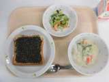 黒ごまトースト 牛乳 冬野菜のクリームシチュー サラダ 主な食材と産地 と...