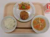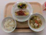 ごはん とびうおのメンチカツ 糸寒天と野菜のあえ物 みそ汁 牛乳