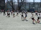 体育朝会を行いました〜 校庭で無理のない速さでのかけ足、持久走に挑戦です〜 寒さ...