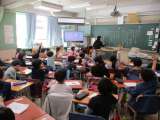 担任の先生とALTの先生と一緒に外国語活動です。 ゲーム的な感覚を取り入れながら...