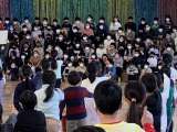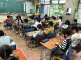 2/22 1年 図工 6年生を送る会 背景作り その2