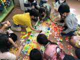 前回の図工の続きとして、今回はちぎり紙&お花紙を使っての花作りを行いました。6...