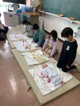 二時間目は、スペシャルゲストに4人の赤ちゃん人形が来てくれました。 抱っこして...