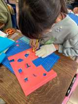 カッターナイフの練習を終えて、次は作品作りに進みました。 ハサミとカッターナイフ...