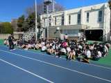 56年生での駅伝大会が始まります。 5年生と6年生それぞれ選手宣誓を行いました。