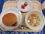 〜今日の献立〜 セルフなみのりバーガー 牛乳 白いんげん豆のスープ くだもの(い...