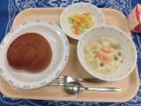 〜今日の献立〜 ココアパン 牛乳 クリームシチュー フレンチサラダ 〜給食メ...