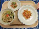 〜今日の献立〜 きつねうどん 牛乳 さくらえびのかきあげ 野菜のごま酢かけ ...