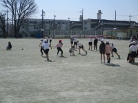1年生のボールゲームの学習です。簡単なボール操作と、攻め、守りなどの動きを学習し...