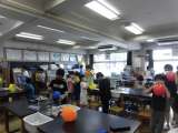 今日の科学クラブでは、ゴムの”張力”を利用した「割れない風船」に挑戦! まず一人...