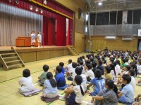 全校児童が体育館に参集し終業式を行いました~校長からは、一学期の最終日に、「自分...