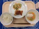 〜今日の献立〜 ごはん 牛乳 油淋鶏 中華サラダ レタススープ 〜給食メモ〜 ...