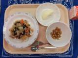 〜今日の献立〜 中華丼 牛乳 大豆とじゃこの甘辛あげ くだもの(りんご) 〜...